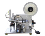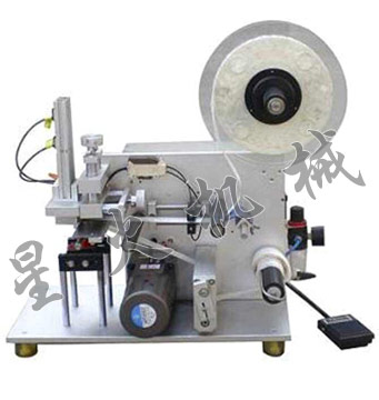 当传感器检测到产品到位或脚踩发出产品到位信号,吸着标签的吸头下行贴标并覆标,然后退回原位吸附下一张标签,等待下一个贴标信号,一张标签的贴附动作完成。